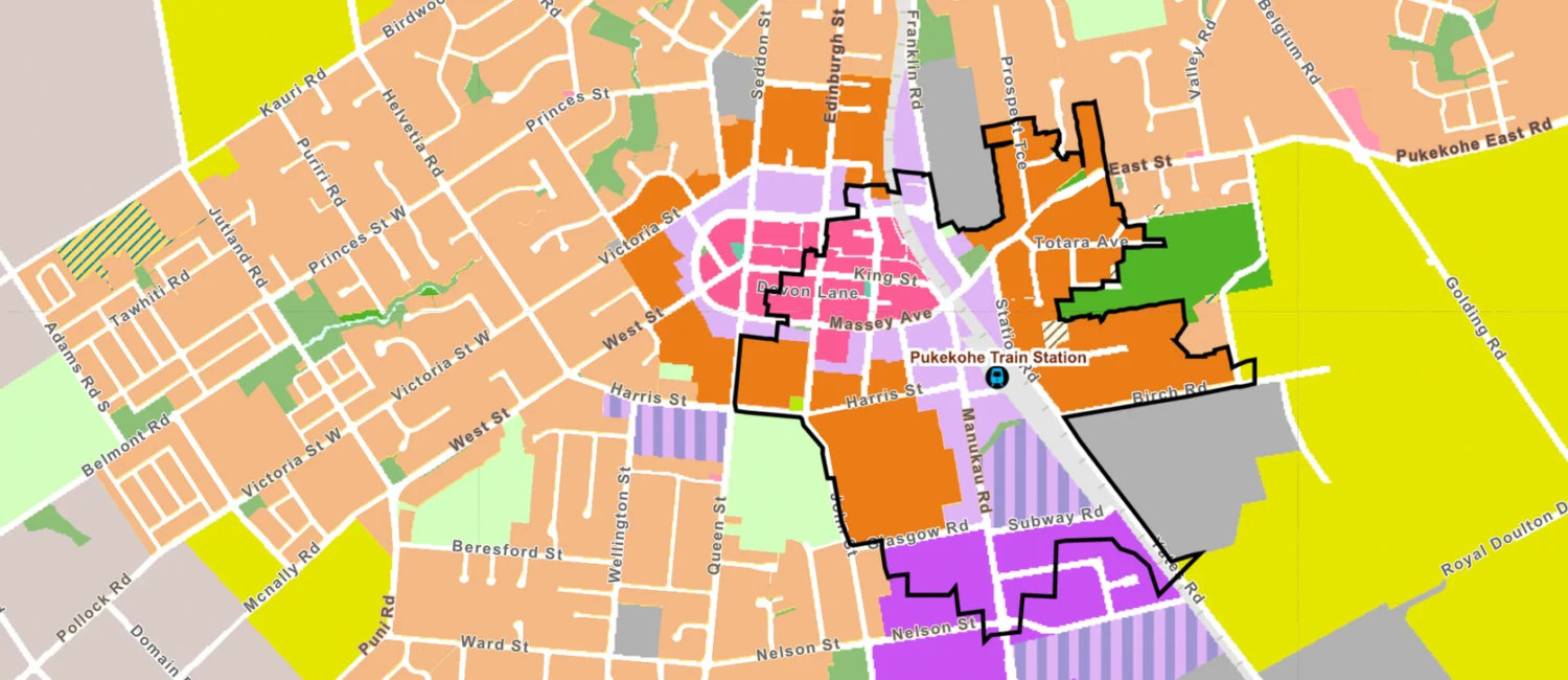Pukekohe now (light orange – existing Mixed Housing Suburban Zone)